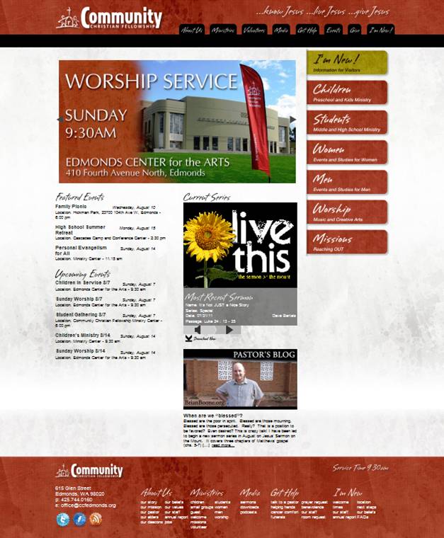 Volunteer Options – This is a part of the website that we will grow into. We now have the ability to place volunteer opportunities on the web (ccfedmonds.org/volunteers). We are trying to make it easier than ever to plug into opportunities to serve Jesus by building the Body and touching the community. Over time this will become a clearinghouse for volunteer positions.