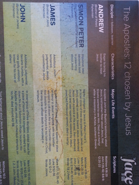 For those that would like a quick snapshot about the twelve disciples of Jesus, I recently ran across this neat chart. It was created by Jeff Patterson and Willamette Church. It gives a great overview of each disciple.